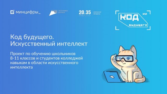 Минцифры России в рамках федерального проекта «Кадры для цифровой трансформации» реализует проект «Код будущего. Искусственный интеллект», направленный на обучение школьников 8 – 11 классов и студентов базовым навыкам в области искусственного интеллекта.